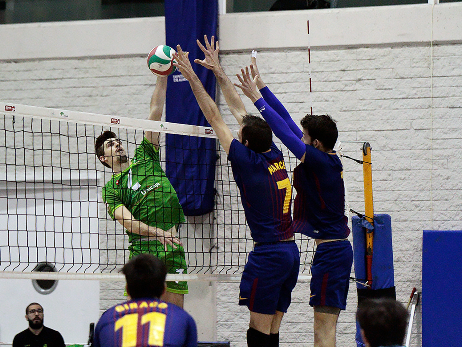 La segunda manga fue de final más claro para los ahorradores, esta vez 25-18, tras haberse repetido el intermedio de 12-7. En ningún momento peligró la victoria blanquiverde y además el que Unicaja pareció poner la directa (20-15). La buena actuación de los hombres de banquillo del Barça, Morato y Petrov, tuvo su extensión en el tramo final, malogrando Unicaja hasta cuatro puntos de partido (de 24-22 a 27-25 final).