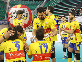 CV Melilla - Ushuaïa Ibiza Vóley CV Melilla festejando un punto