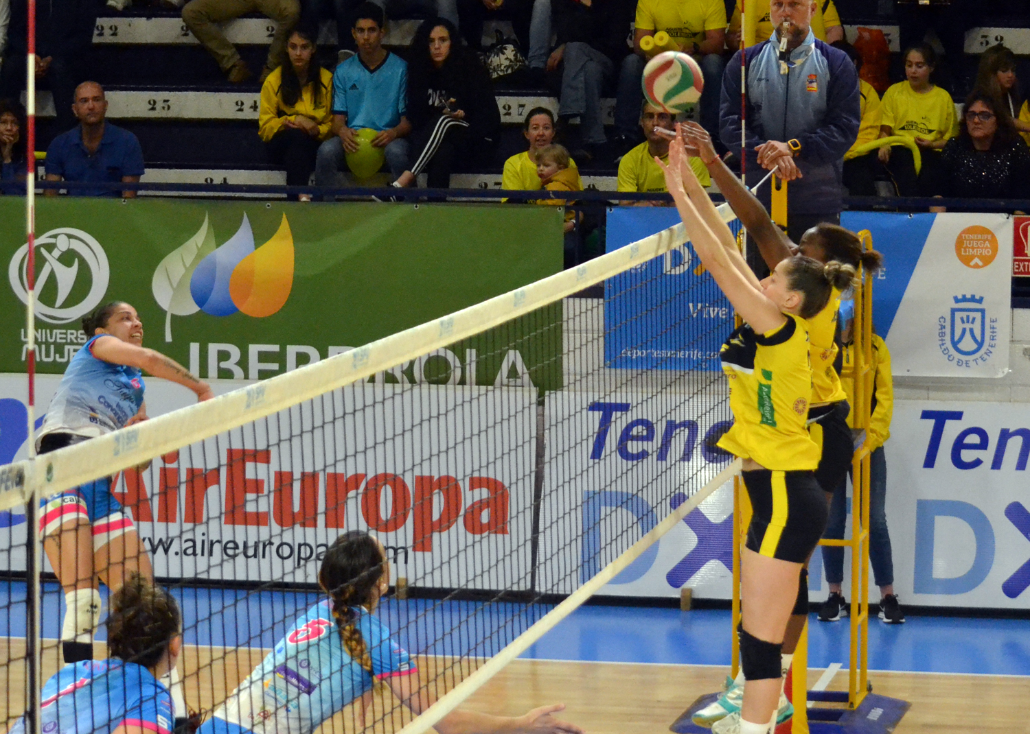 El comienzo del partido no defraudó a los espectadores que acudieron en la tarde del domingo al Ríos Tejera. Reparto de golpes de ambos conjuntos hasta que los fallos en defensa de las locales abrieron la primera brecha en el marcador. Logró el DISA Aguere Tenerife acercarse e igualar el duelo (17-17), pero nada pudo hacer ante el buen hacer de las de Taco en la red (20-25).