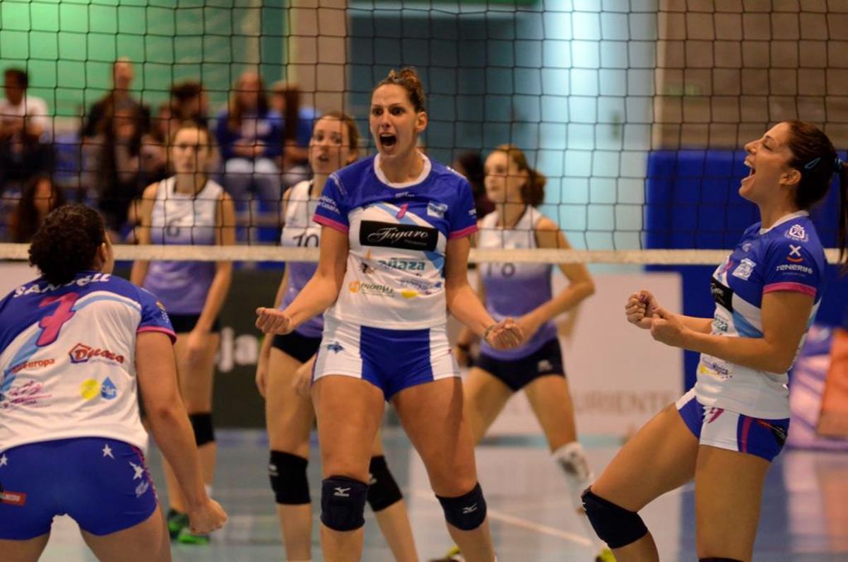 Lejos de rendirse, las blanquiazules reaccionaron en el segundo set y comenzaron a desplegar su mejor juego (12-8). La brillante actuación de la opuesta Patricia Suárez fue una pieza clave para que el conjunto tinerfeño asumiera de forma decisiva el control del parcial y pusiera la igualada en el marcador (25-17).