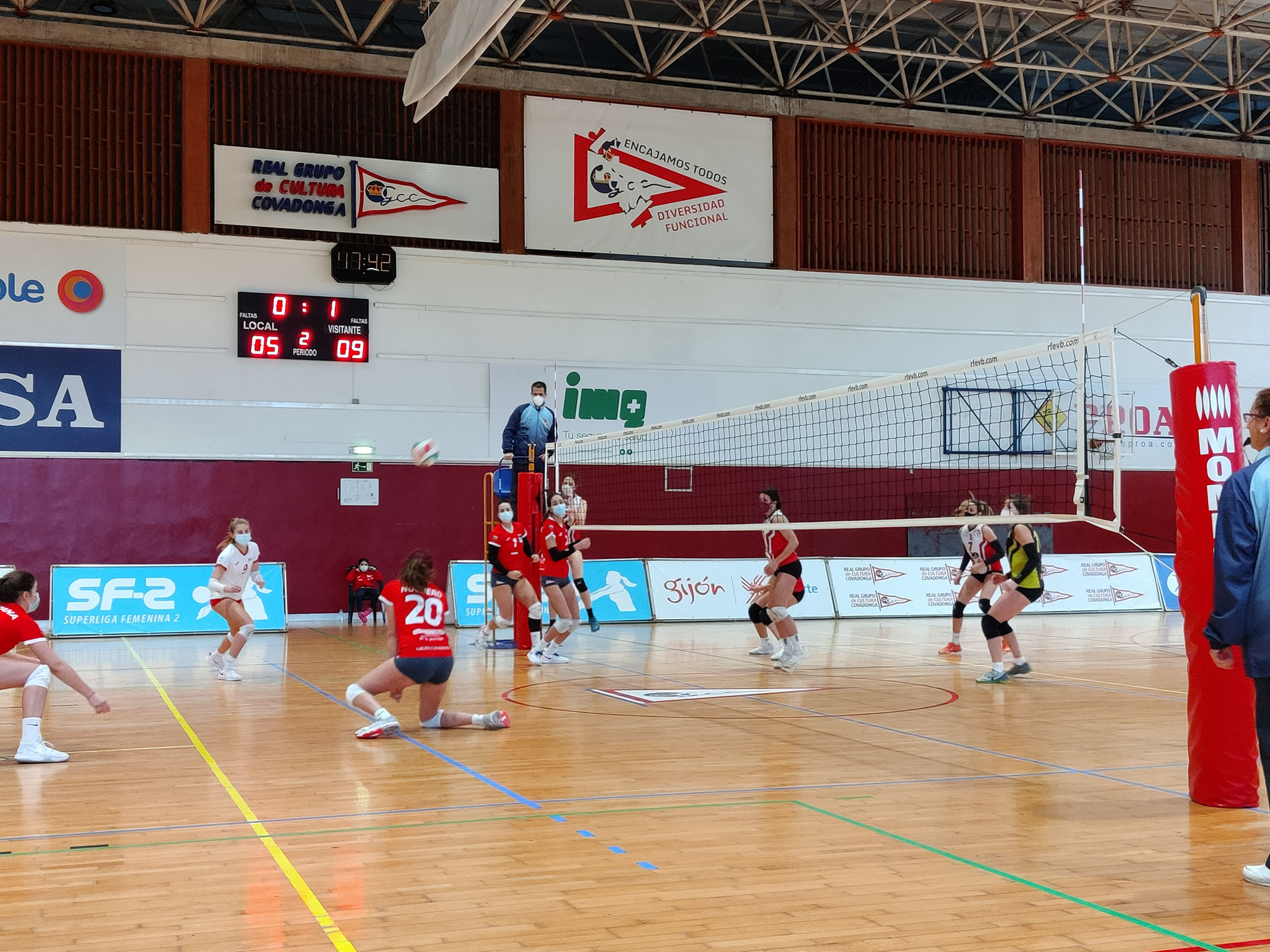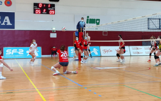 El grupo recibe al Voley Sanse Vuvuzela con las baja de su colocadora Elena Rodríguez. El partido comenzó muy igualado, pese a los numerosos intentos de las visitantes por llevarse el set, lideradas por su capitana Amparo Hopf. Las locales aguantaron el tirón gracias al doble cambio, formado por Sara y Covadonga Noguero, consiguiendo igualar el marcador 24-24 pero, dos errores cometidos por el equipo local hizo que el Sanse se anotara el primer set en su casillero por 24-26.